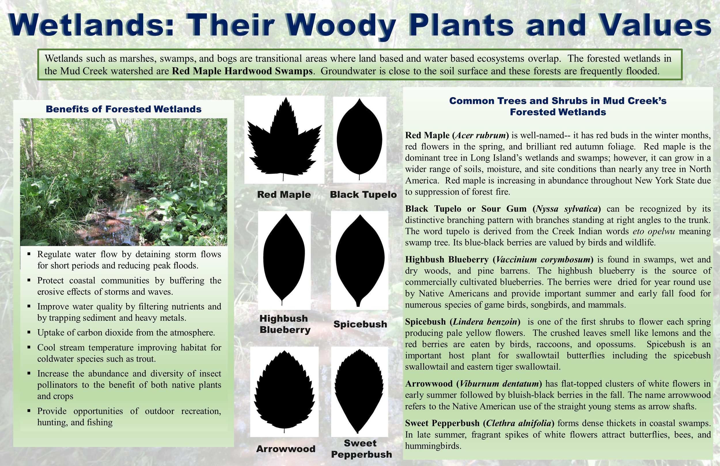 Interpretive signage and/or lesson plans have been developed for Glen Cove Mixed-Use Waterfront Redevelopment (Glen Cove, NY), Hubbard County Park (Flanders, NY), Long Island Aquarium & Exhibition Center (Atlantis Marine World, Riverhead, NY), Mud Creek County Park (East Patchogue, NY), and Paumanok Preserve (Huntington, NY).
